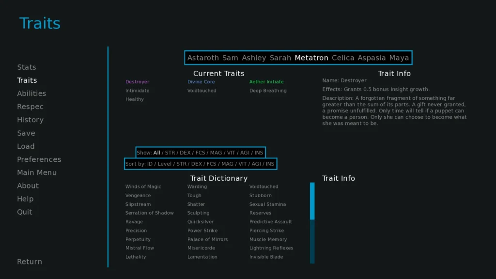 This is all governed by the elegant Divine Dawn stat system. Your six core stats are: