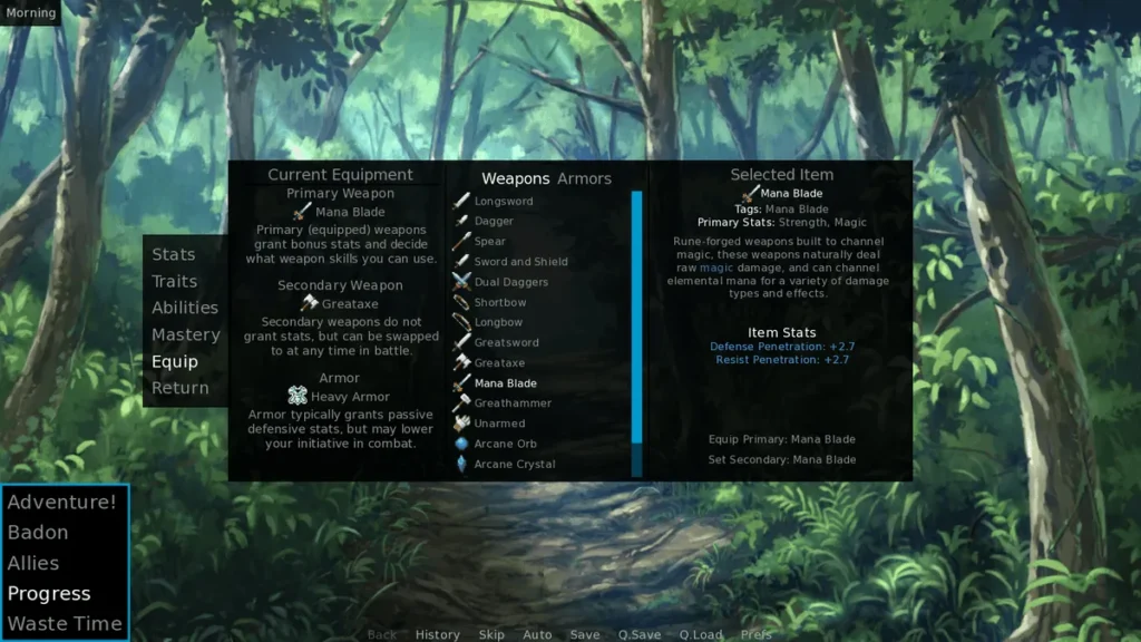 * Intellect: Magical damage, skill checks, and mana pool.