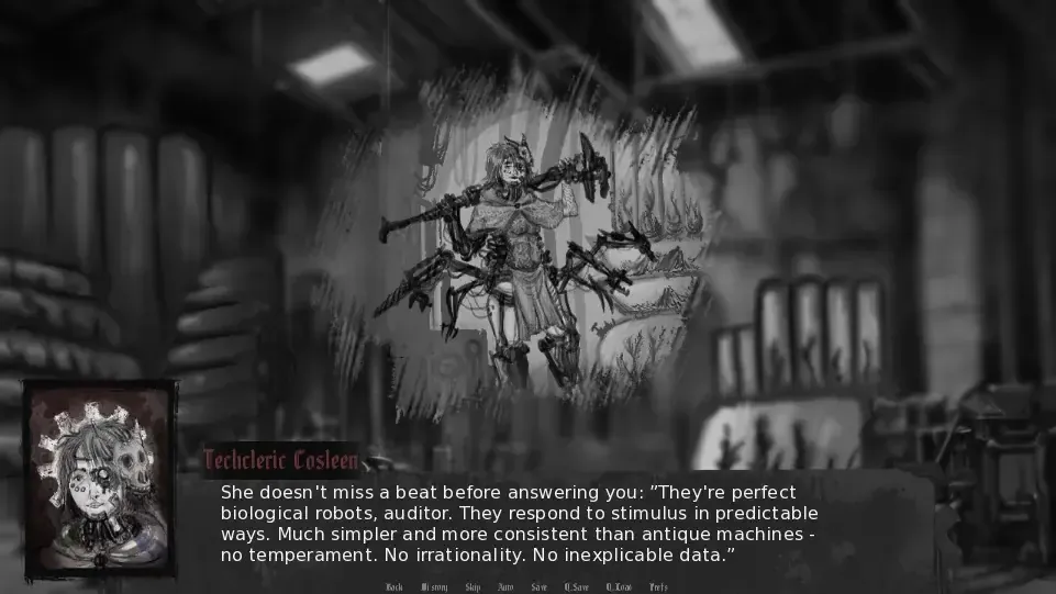* Dialogue Options: Entire conversation paths will open or close based on your facets. A “Paperwork Expert” will spot a procedural loophole no one else sees, while a “Bleeding Heart” might have a unique option to offer whispered comfort.